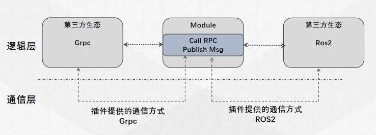 如果发现其中一个模块需要部署在机器人端,另一个需要部署在云端,则 client-server 之间可以通过 http、tcp 等方式进行通信。