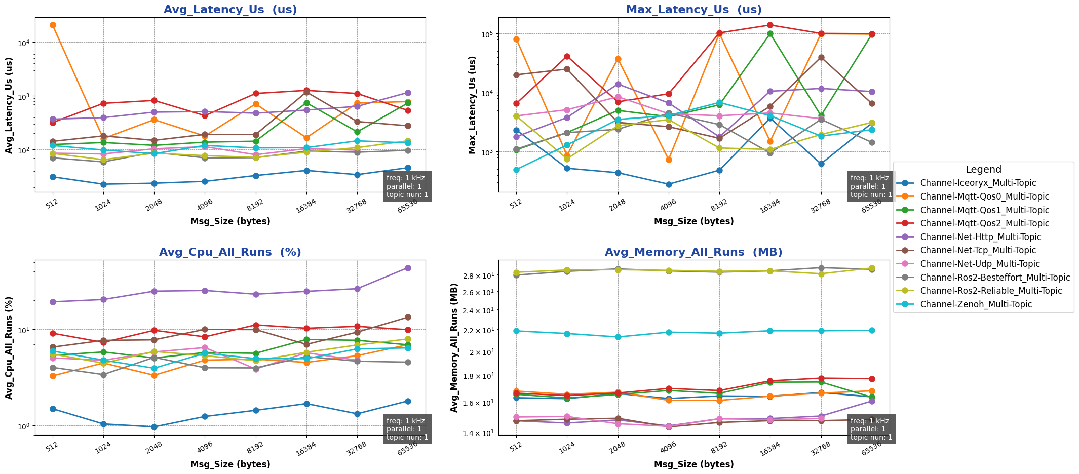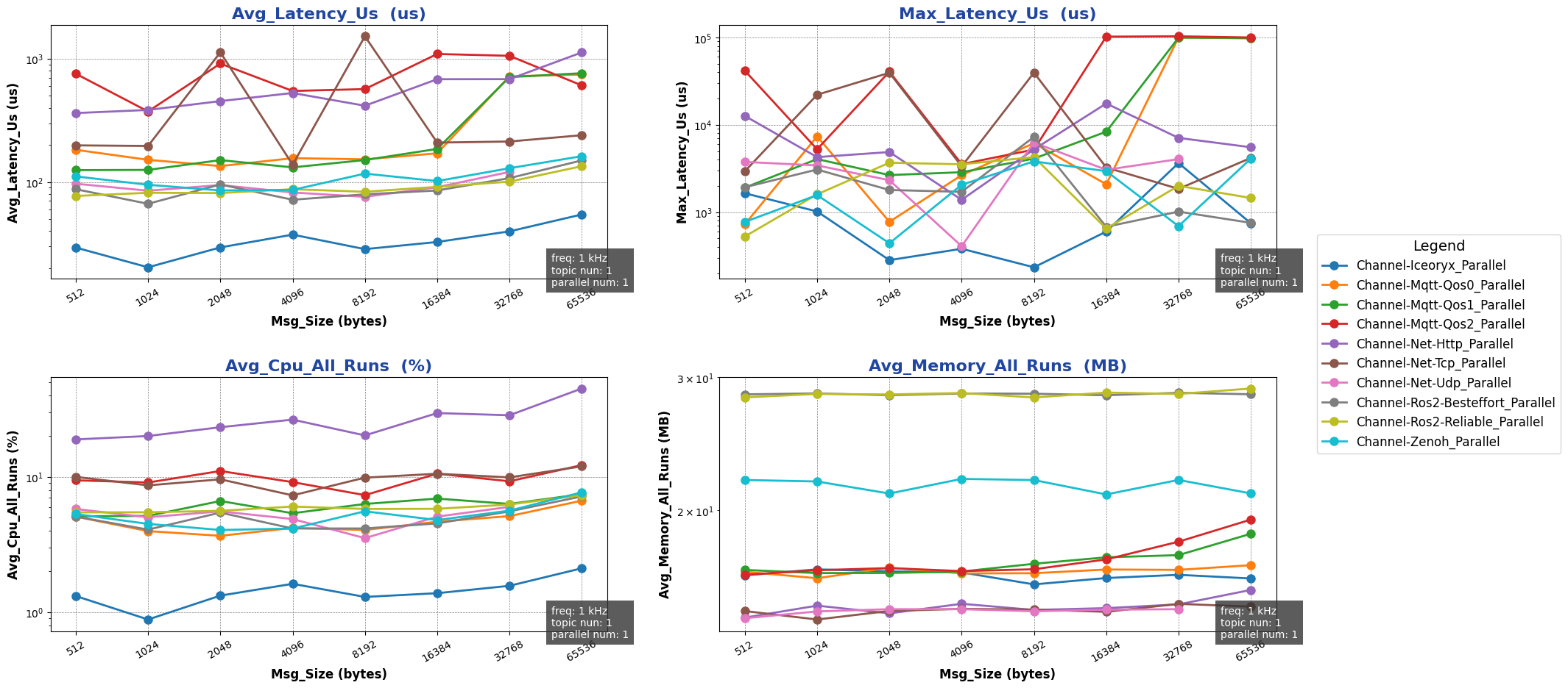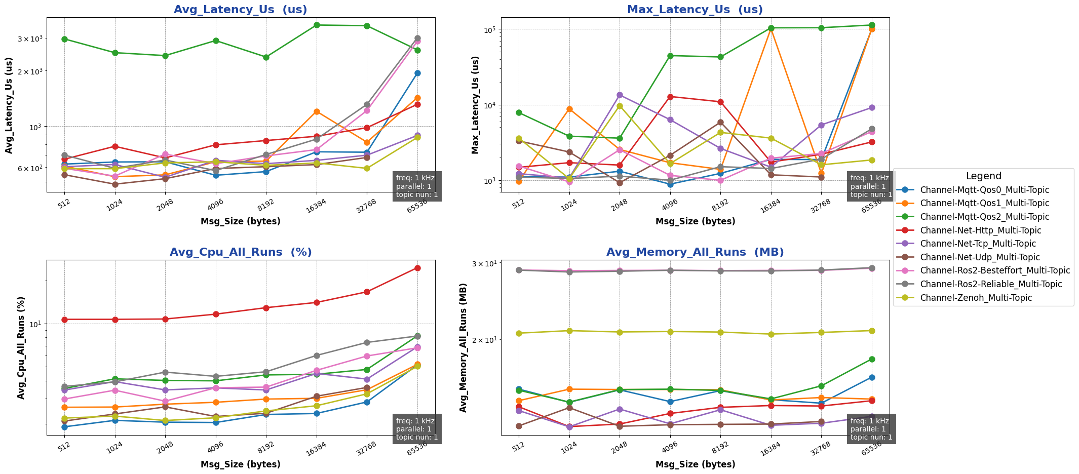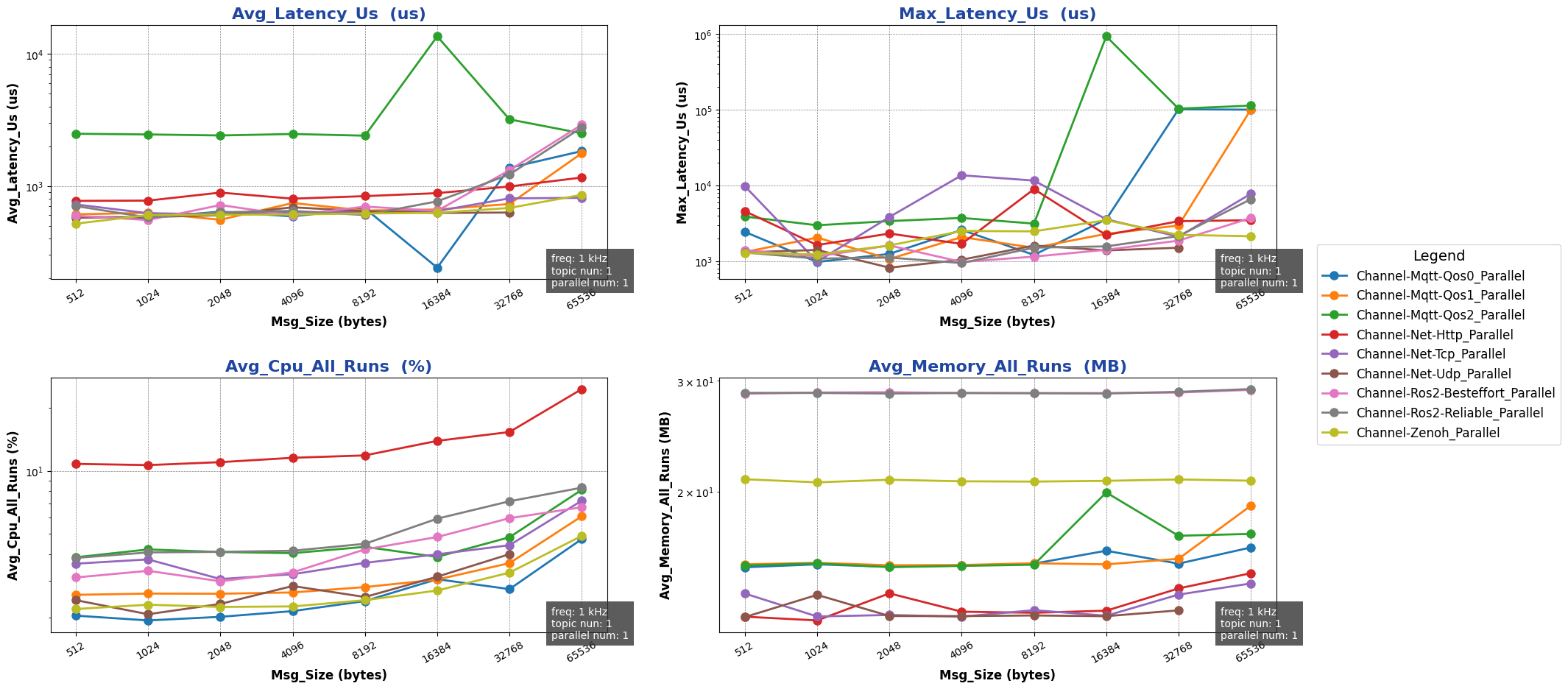 注: 用于进行测试的消息类型除 ros2 后端使用 ros2_msg 协议外,其余通信后端均采用 protobuf 协议。