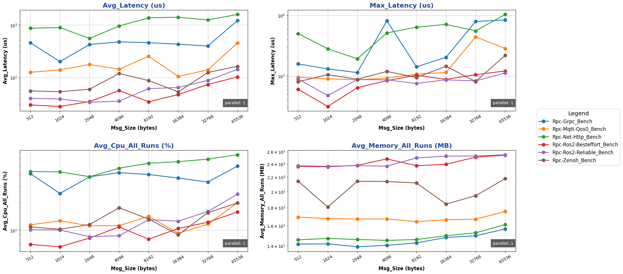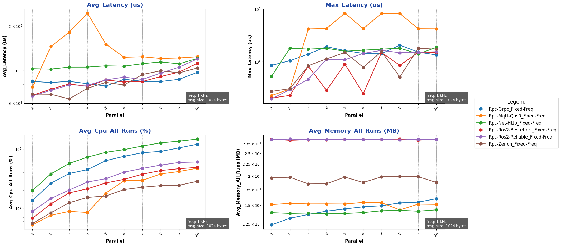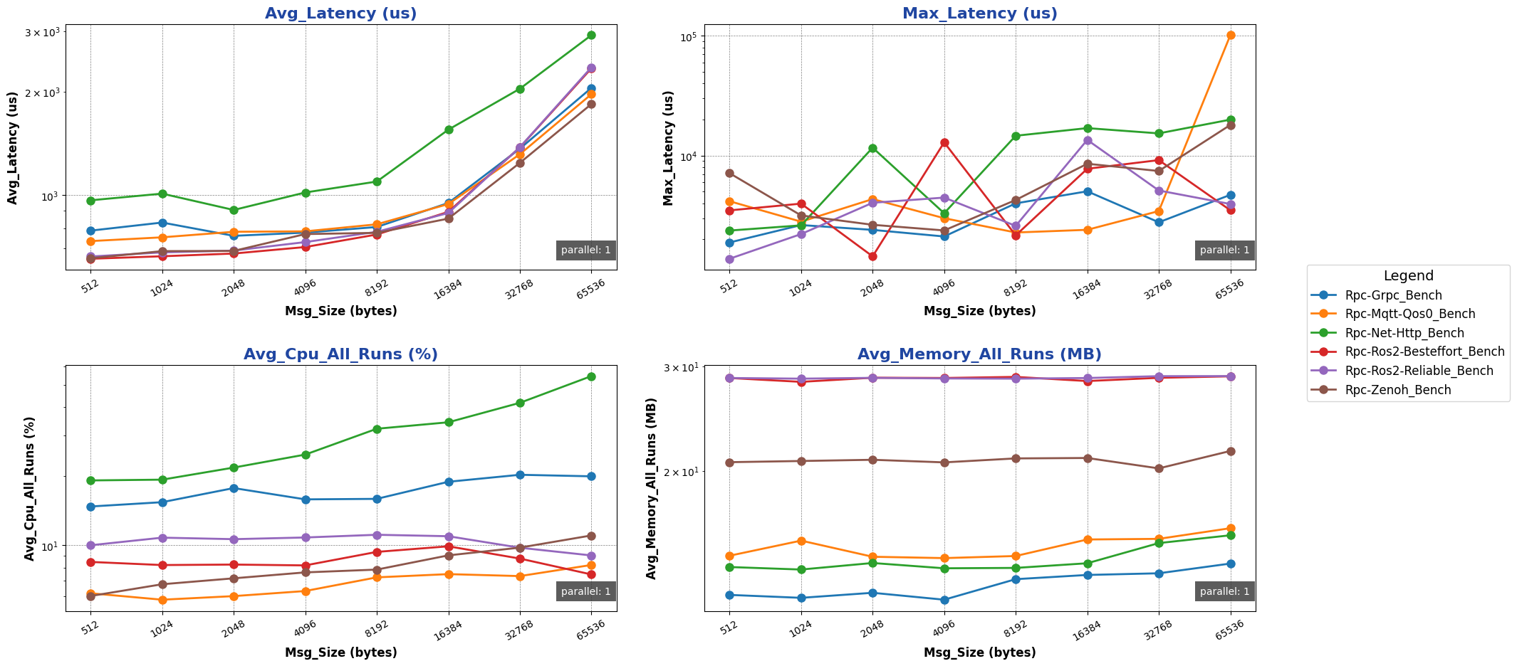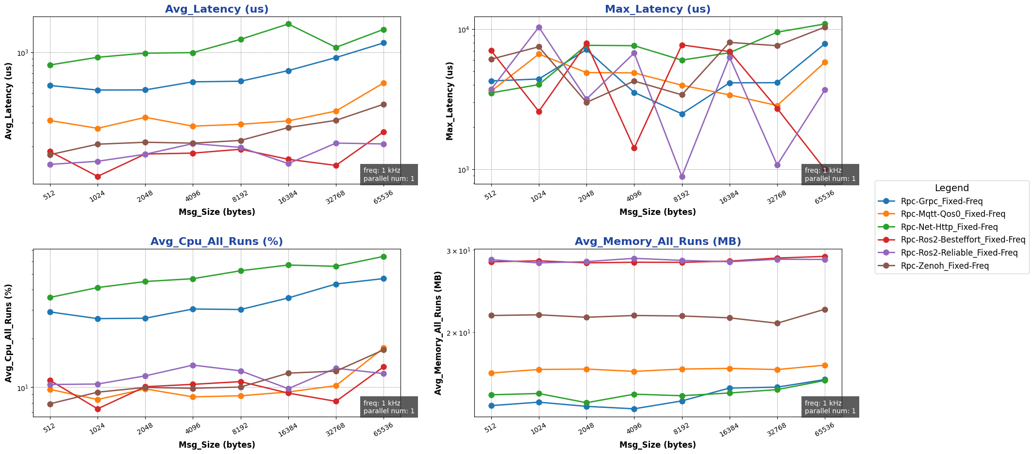 注: 用于进行测试的消息类型除 ros2 后端使用 ros2_msg 协议外,其余通信后端均采用 protobuf 协议。