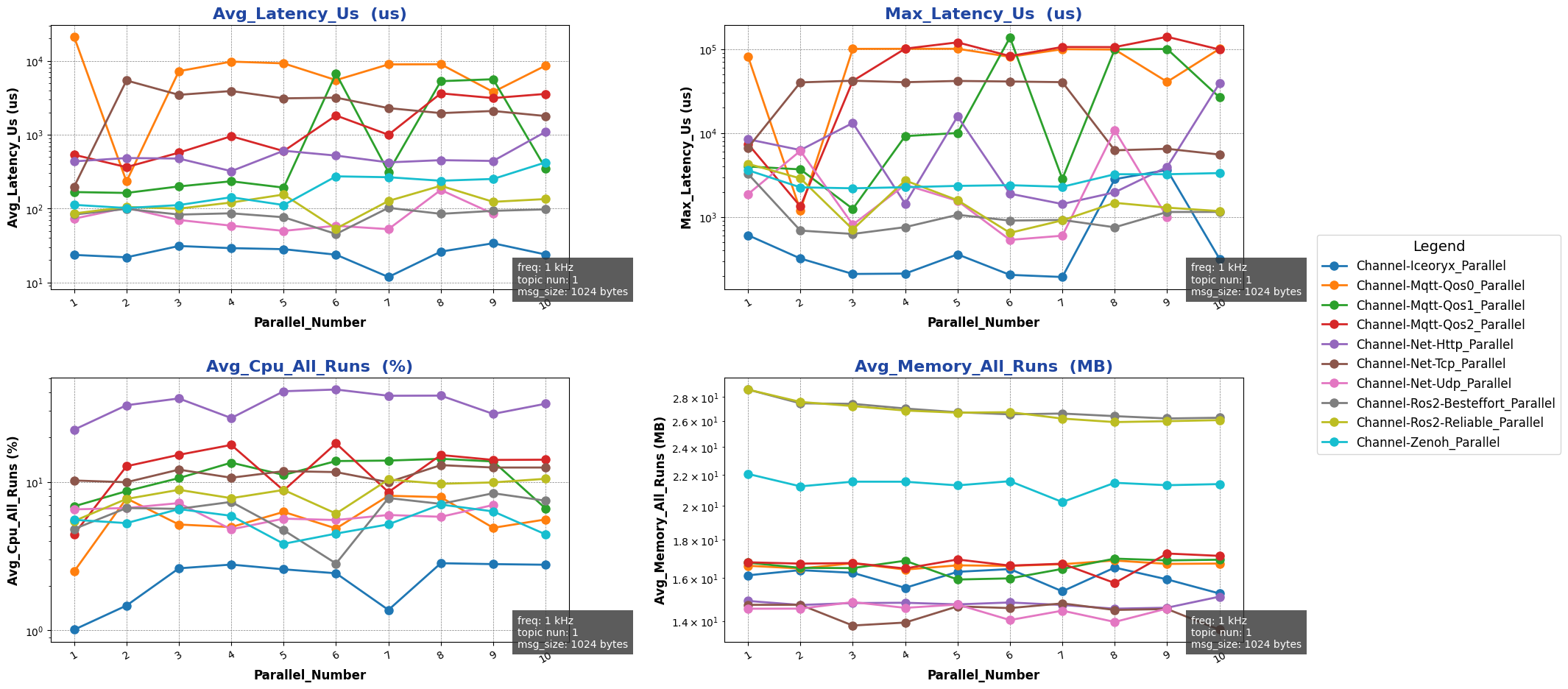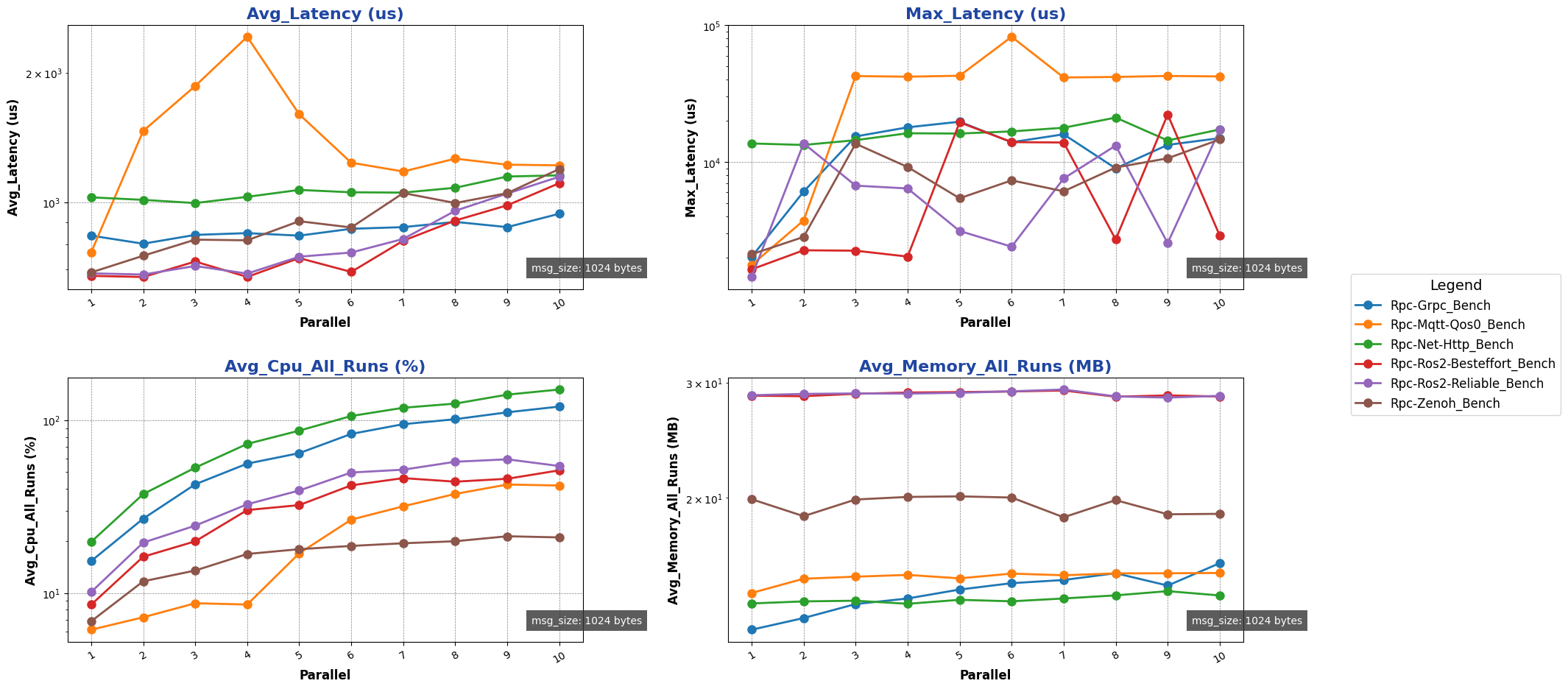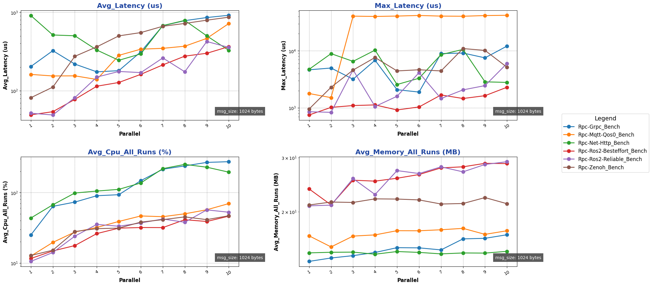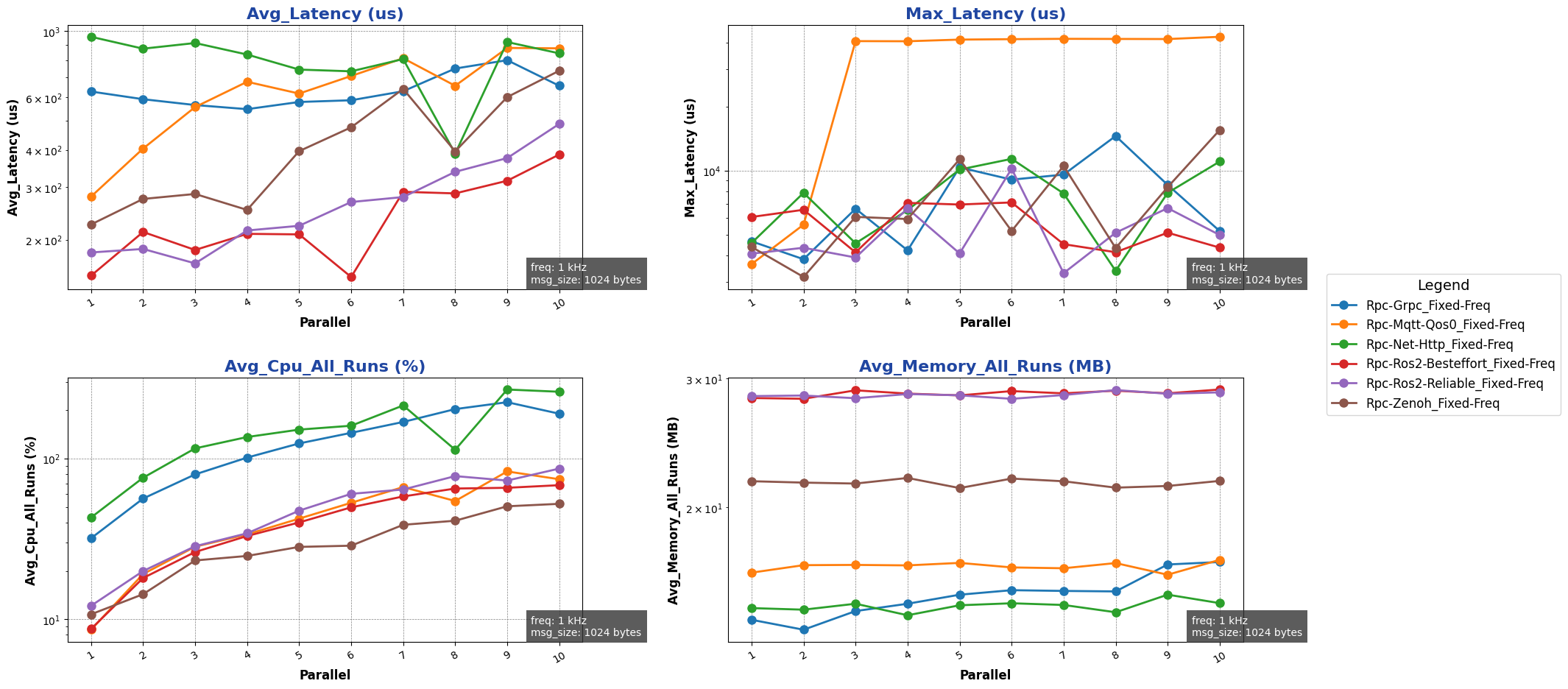 注: 用于进行测试的消息类型除 ros2 后端使用 ros2_msg 协议外,其余通信后端均采用 protobuf 协议。