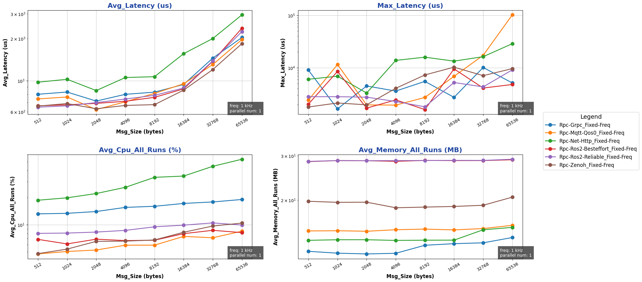 注: 用于进行测试的消息类型除 ros2 后端使用 ros2_msg 协议外,其余通信后端均采用 protobuf 协议。