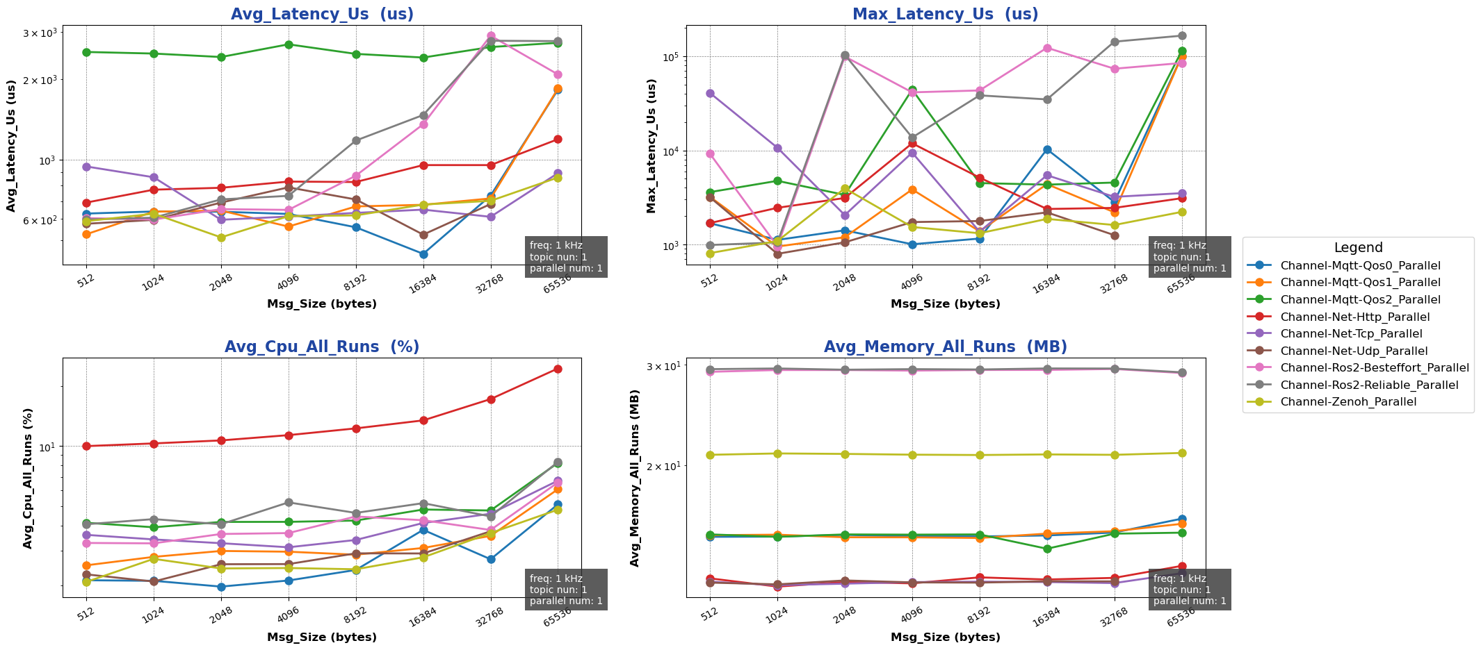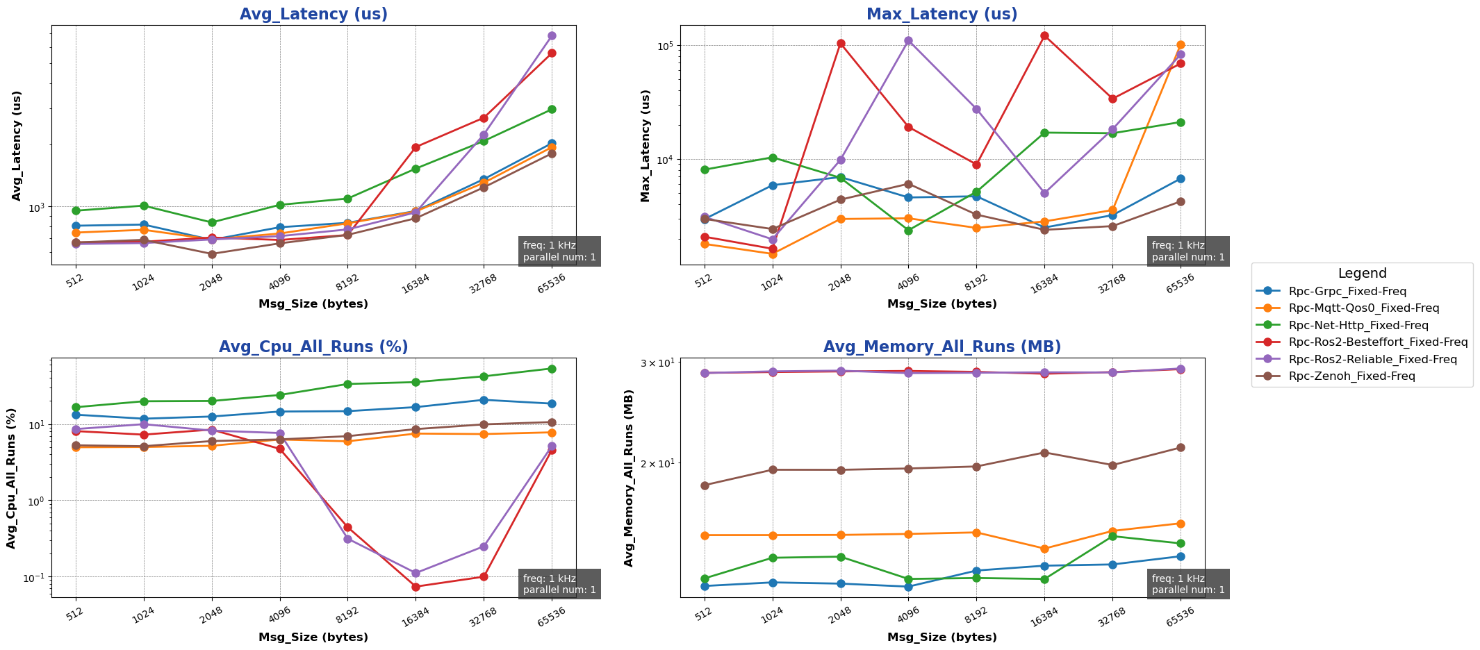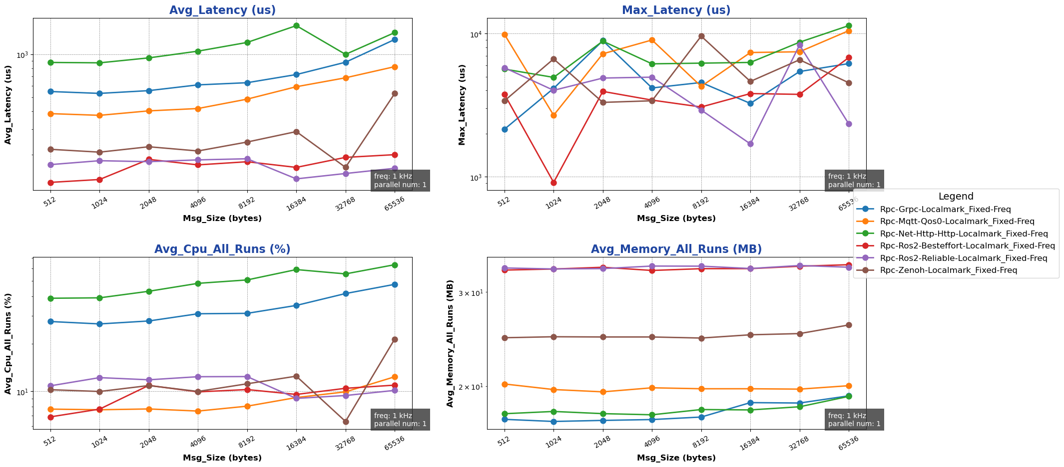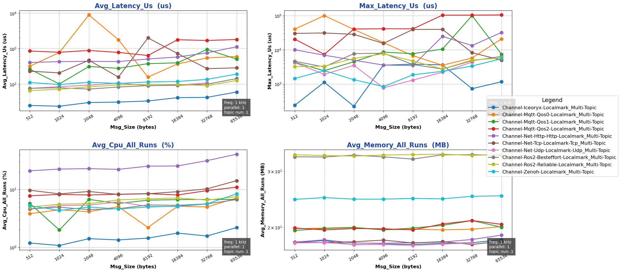 注: 用于进行测试的消息类型除 ros2 后端使用 ros2_msg 协议外,其余通信后端均采用 protobuf 协议。