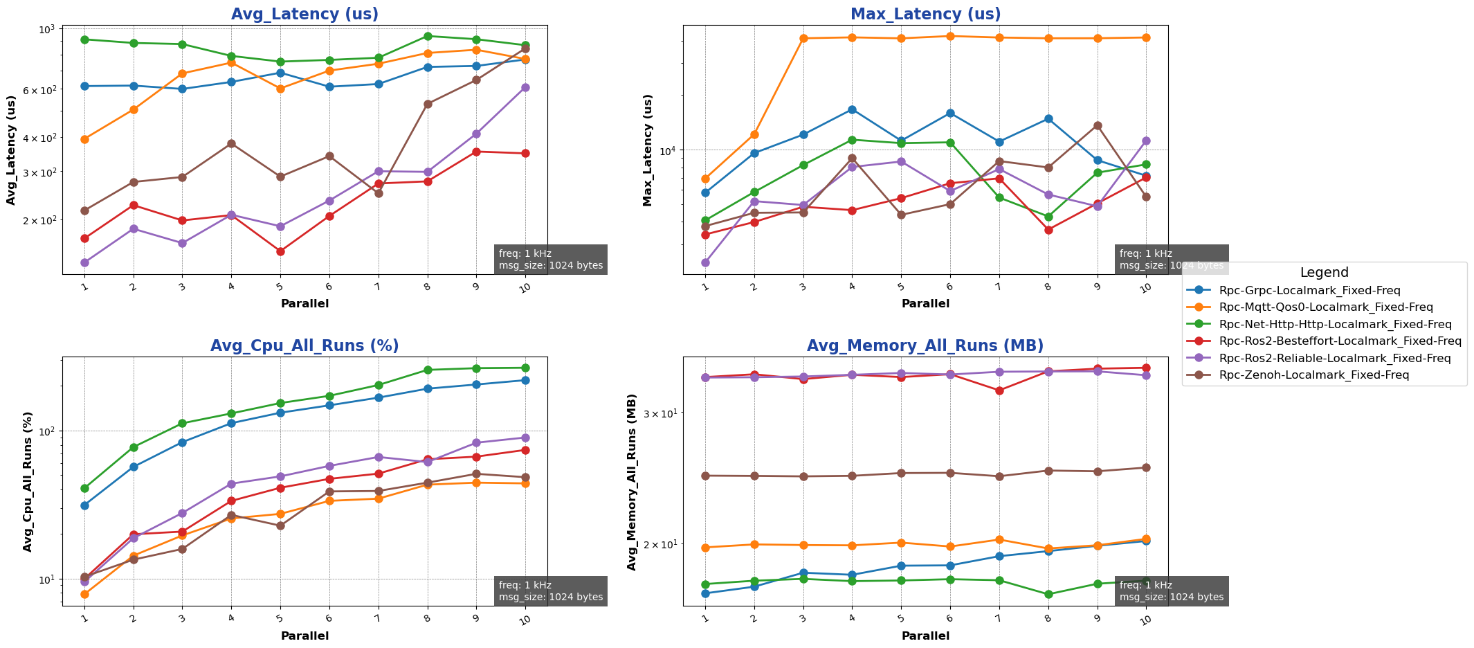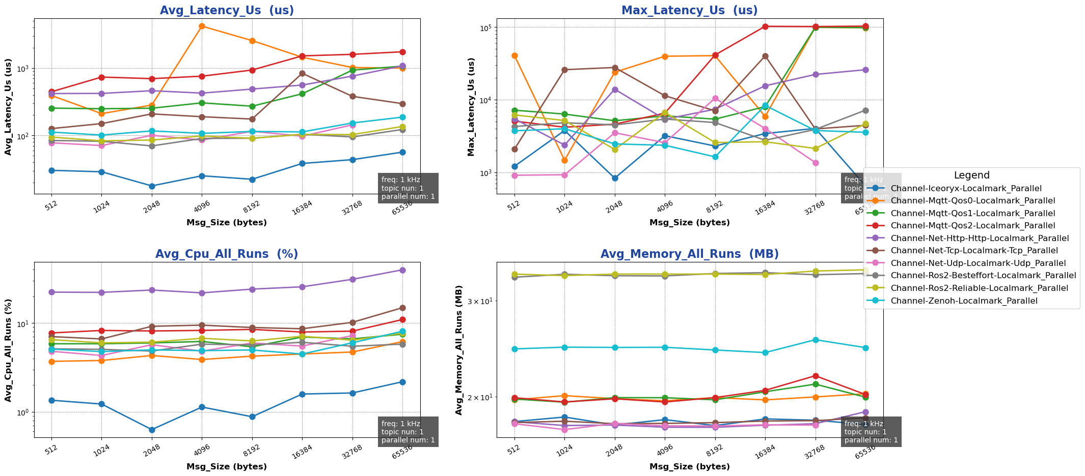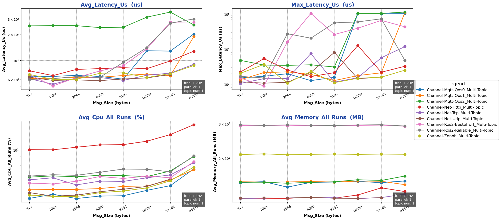 注: 用于进行测试的消息类型除 ros2 后端使用 ros2_msg 协议外,其余通信后端均采用 protobuf 协议。