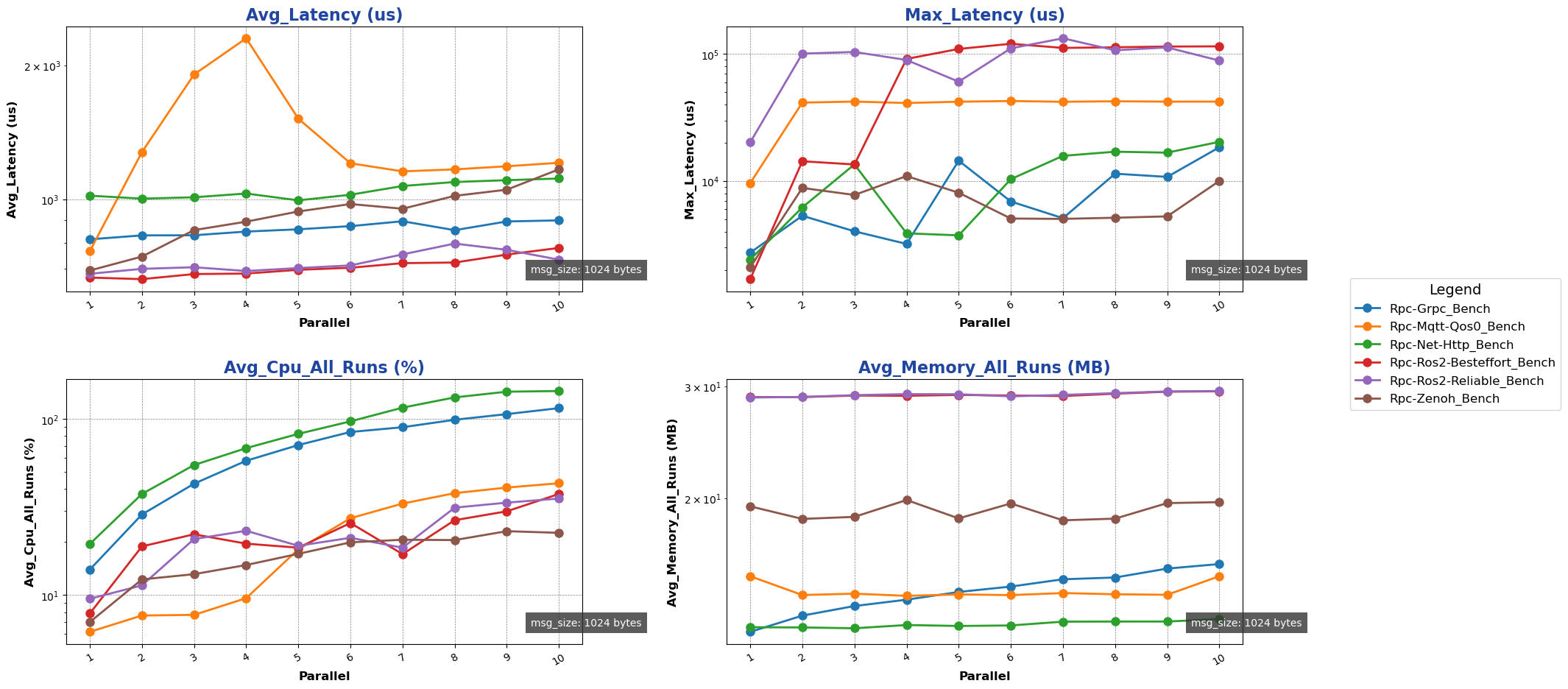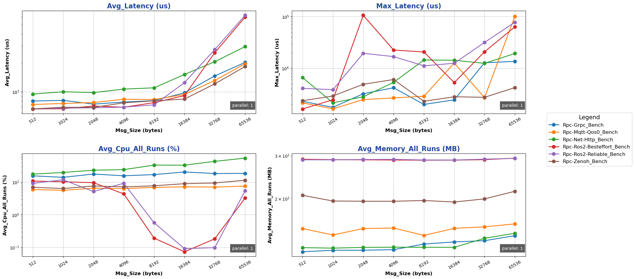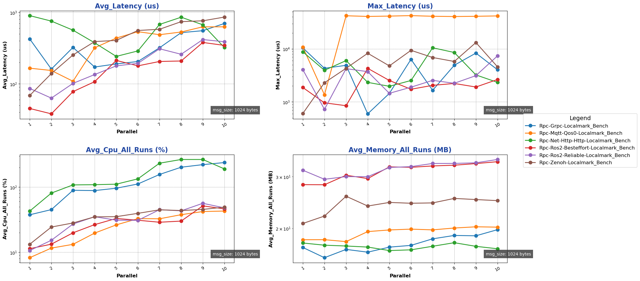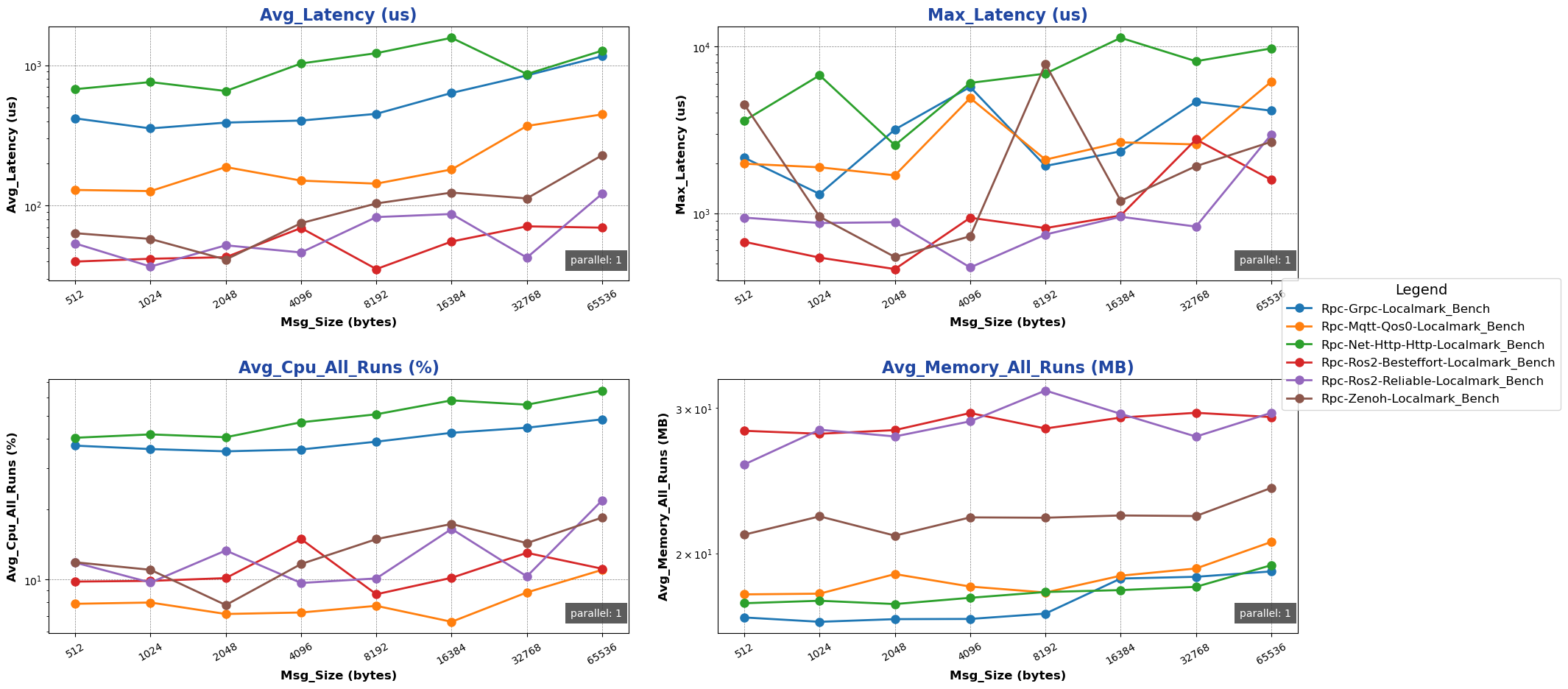 注: 用于进行测试的消息类型除 ros2 后端使用 ros2_msg 协议外,其余通信后端均采用 protobuf 协议。