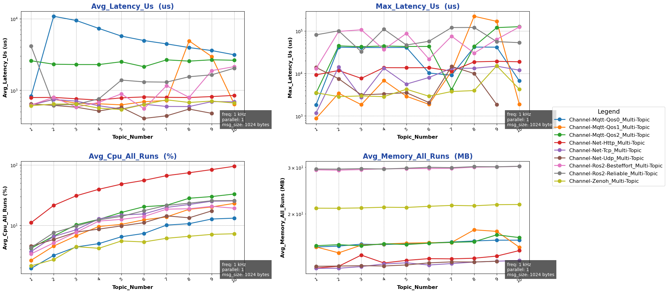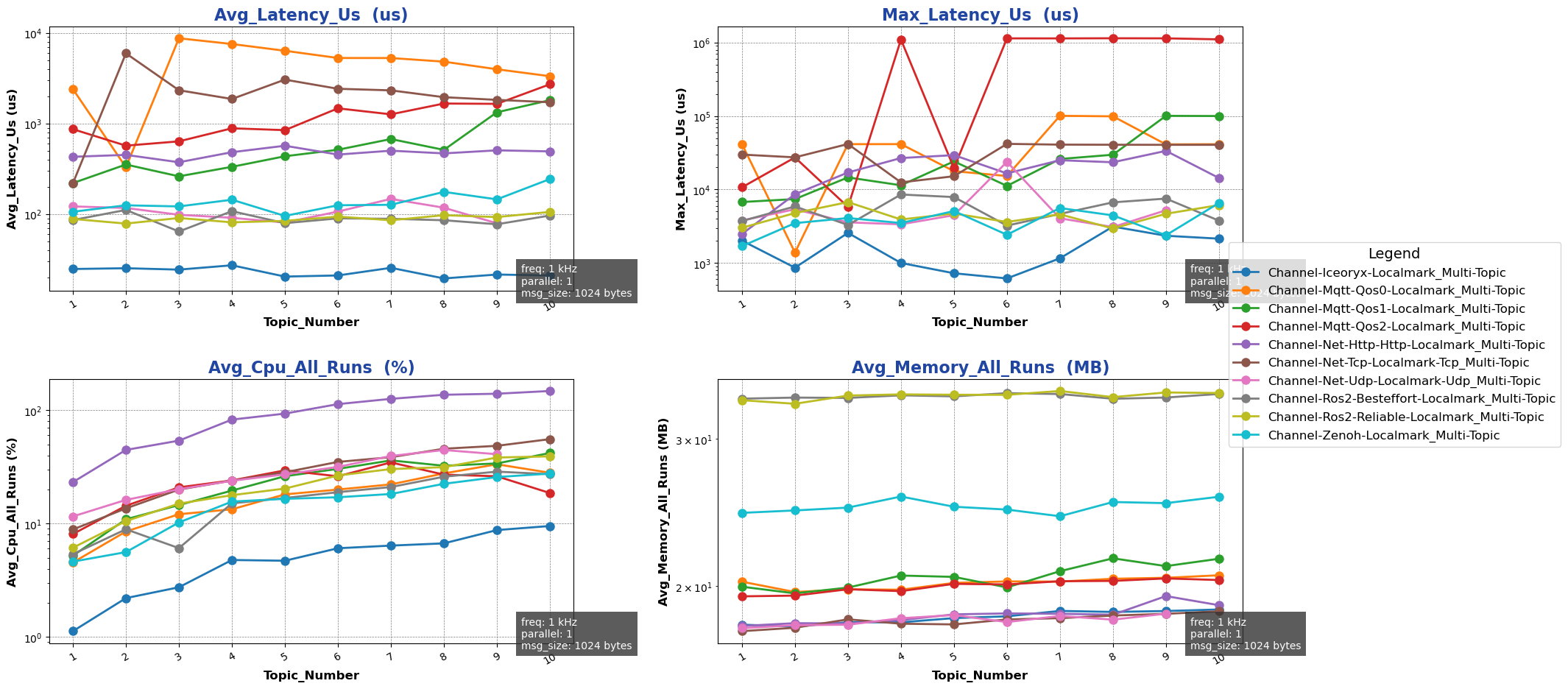 • 测试目的:单机跨进程 Channel 后端在 multi-topic 模式下不同话题数下性能测试