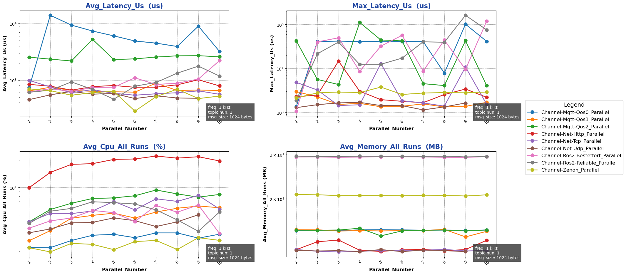 • 测试目的:单机跨进程 Channel 后端在 parallel 模式下不同并发数下性能测试